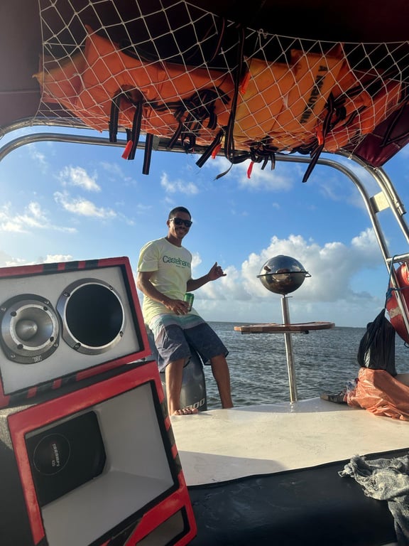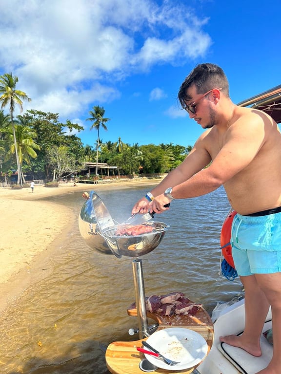 Trabalhamos com a melhor qualidade de embarcação existente em Morro e com lotação reduzida - odiamos lotação tanto quanto você. Abaixo você pode conferir as fotos de nossa embarcação e de todos os acessórios existentes nela. A churrasqueira poderá ser usada na modalidade de passeio privativo.